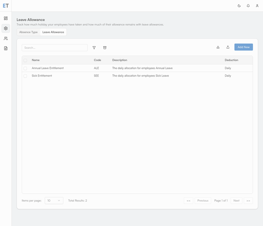 Absence Settings allow you to define the types of leave available within your organisation and set employee leave allowances.