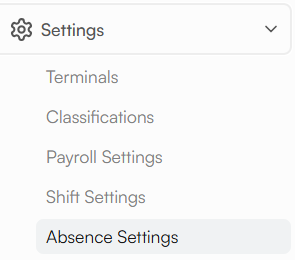From the main navigation menu, select Settings, then click Absence Settings.